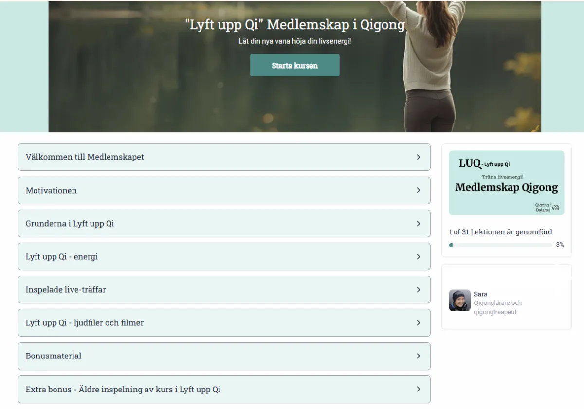 Du får återkommande Qigong varje vecka – och väljer själv hur du tränar, i din egen takt: